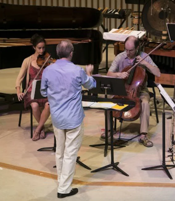 I first played and taught at the Composers Conference and Chamber Music Center currently led by the composer Mario Davidovsky and the conductor James Baker in 1989. For two weeks every summer, my colleagues and I are in residence previously at Wellesley College and starting this summer at Brandeis University in Massachusetts, and devote ourselves to working with young emerging composers who receive fellowships to attend the Conference and have their work performed and recorded. There are two guest senior composers in residence, with Alex Mincek and Rand Steiger being our 2018 guests. We also coach chamber music groups formed by a loyal, inquisitive, and enthusiastic band of amateur players. For more information go to www.composersconference.org.